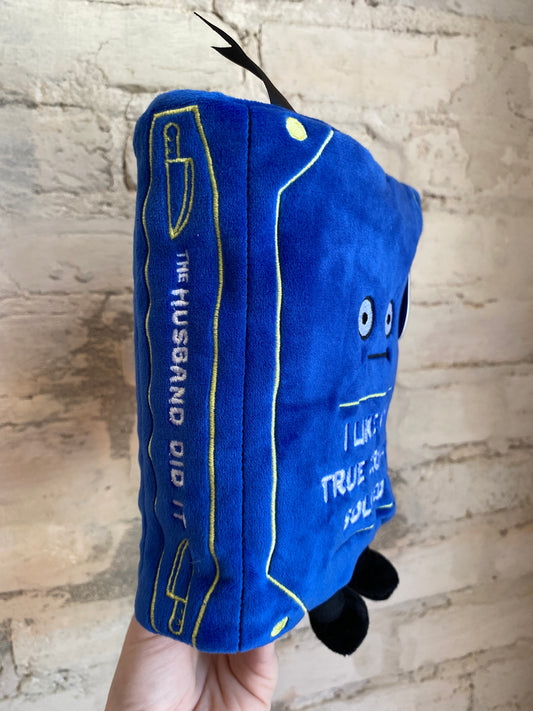 “I Like My True Crimes Solved” book plushie